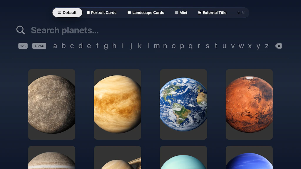 tvOS 15+ (compatible with Apple TV 4K 1st generation and newer). The library uses SwiftUI's .searchable modifier which requires tvOS 15 minimum.